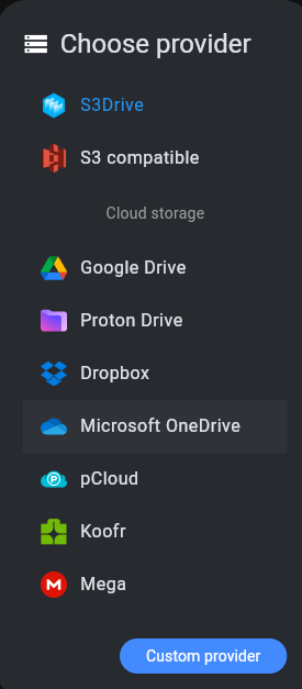 You can then extract config using: rclone config dump or manually copy it out from Rclone config .ini file (use rclone config file to get the location) and import it to S3Drive using blue: Custom provider button.