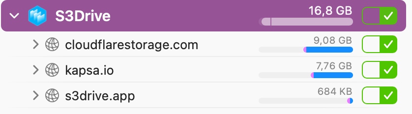Given that you refer to excessive downloads, do I understand correctly that you download data FROM remote buckets, one hosted with S3Drive, the other from Cloudflare R2, each around 1GB (or less) TO local path on your macOS?