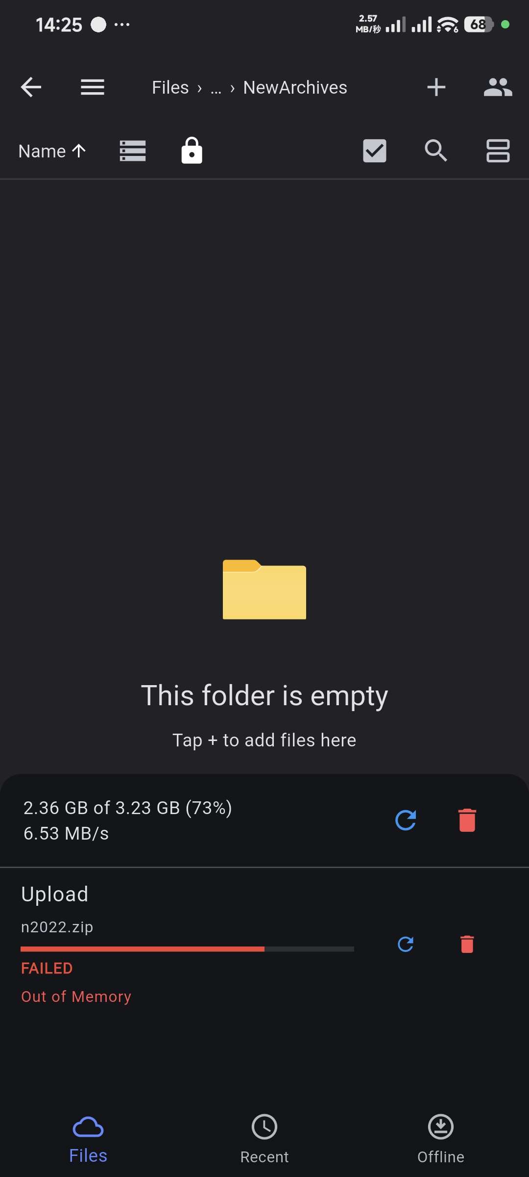I checked the available memory on my device and had more than 6 GB free during the upload, while S3Drive allocated only about 1,5 GB. I am using Samsung’s Android 16 and it was the only upload running at that time.